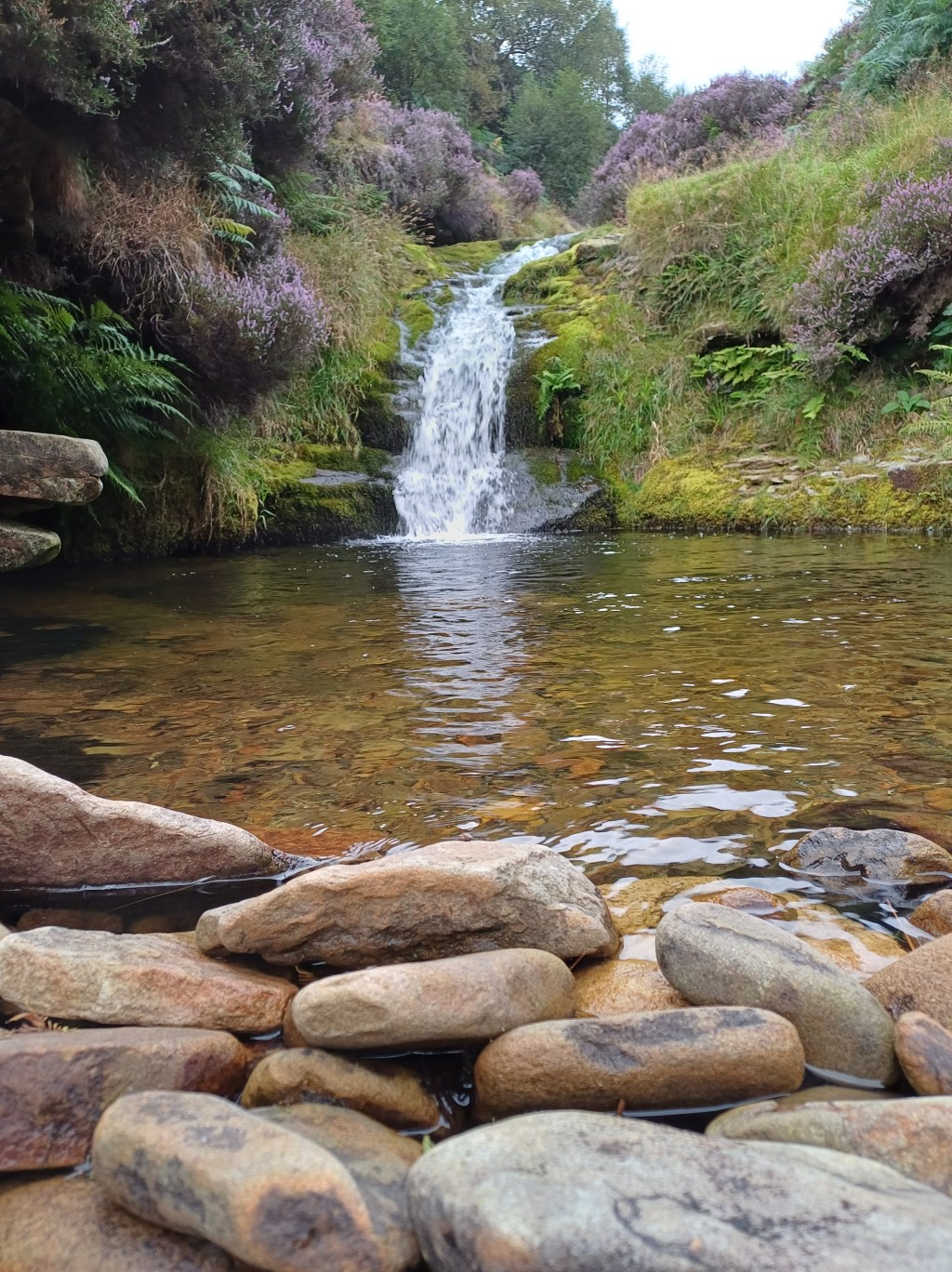 Route out: take the path down that runs alongside Blackden Brook (a little care needed around the main waterfall: steep drop and some under-erosion)