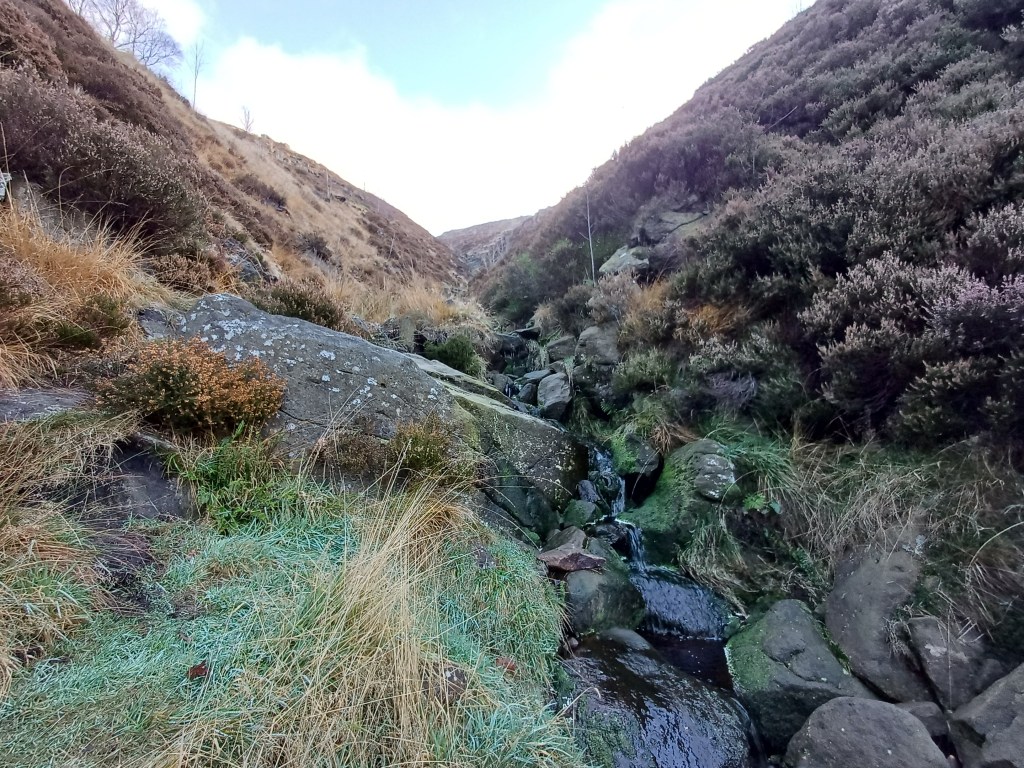 Route out: you can retrace your steps down the clough but it’s much easier though longer to walk south and then east along the valley-top path towards Chew Reservoir and then back down Chew Road